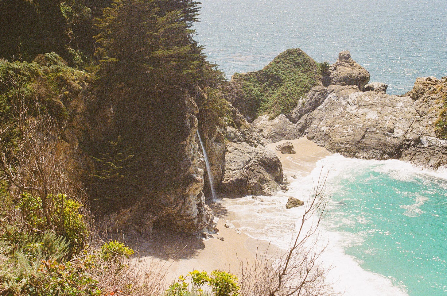 I drive over Bixby Bridge. I park and walk down to McWay Falls. A painter is set up, working on a watercolor of the falls. She is silent. No one bothers her, but they point and smile, delighted. From this vantage point, McWay Falls seems small, but it really isn’t. It’s an 80 foot tall solid stream of freshwater. I imagine my father standing here, looking at the same waterfall. He also visited Big Sur in his twenties, sometime in the late 1970s. Back then, the falls poured itself directly into the Pacific. My father and one of his friends had ridden cross-country on a motorcycle, all the way from Wisconsin, to get here. Along the way, they had camped out in farmer’s fields, or wherever there was land, and never got in trouble. I love this story, but the idea of Big Sur has always had a pull on me, even before I ever heard it. This is just one way I know I’m my father’s daughter.